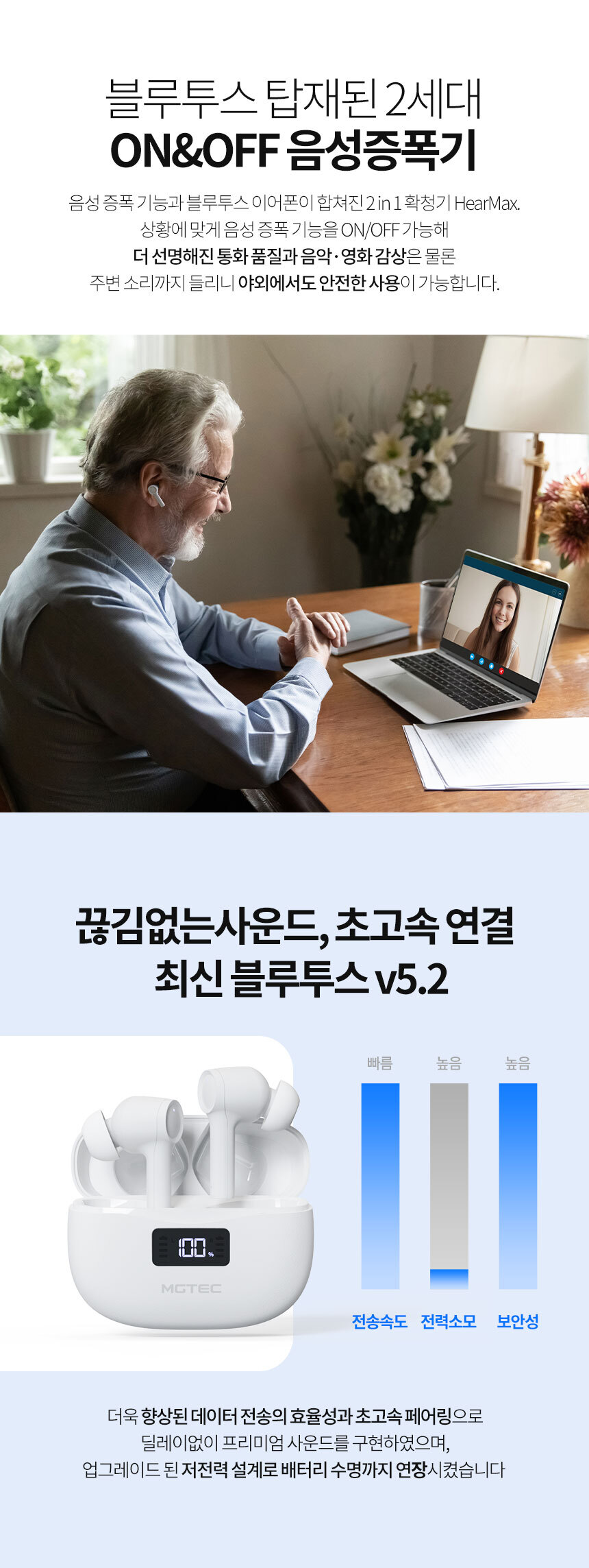 엠지텍 확청기 음성 증폭기 보청기 대용 무선 블루투스 이어폰