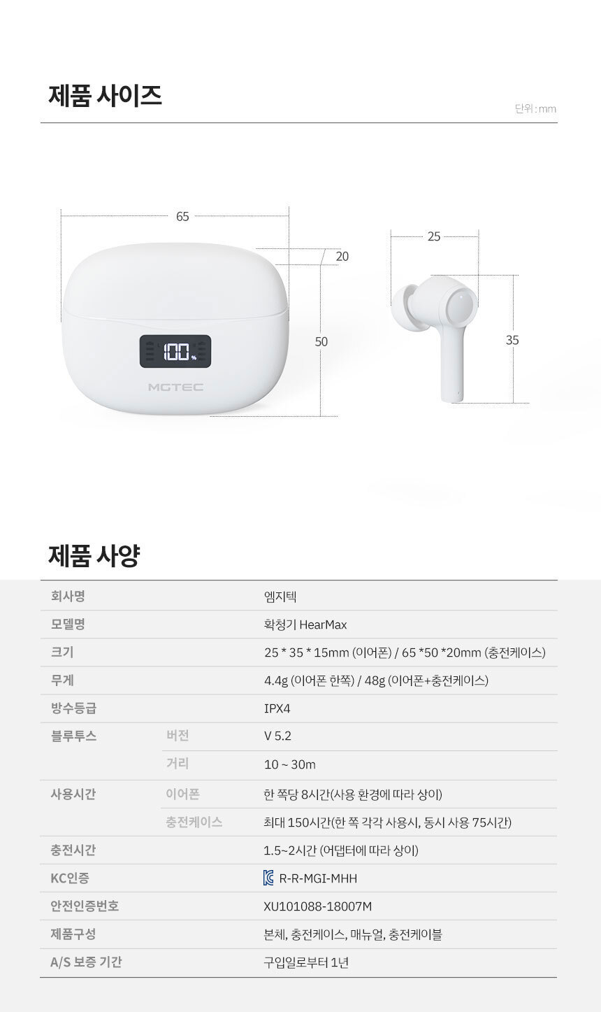 이미지 확대보기엠지텍 확청기 음성 증폭기 보청기 대용 무선 블루투스 이어폰
